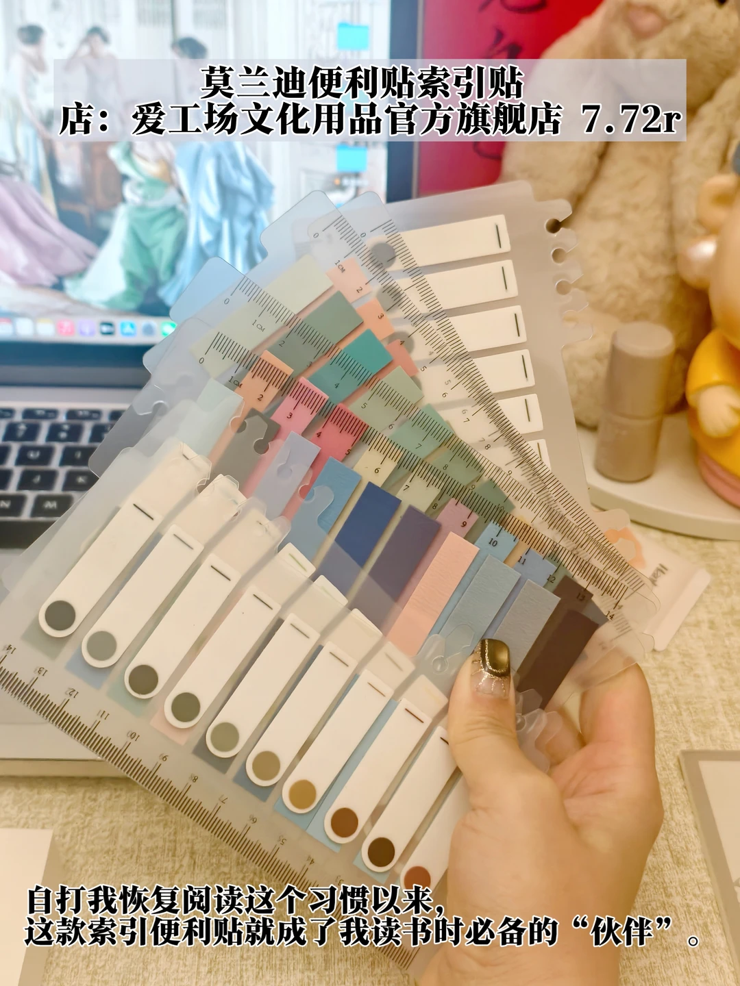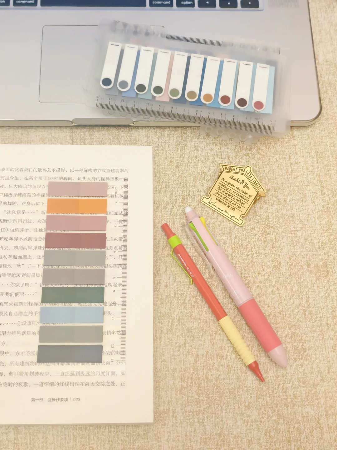 自打我恢复阅读这个习惯以来,这款索引便利贴就成了我读书时必备的“伙伴”。莫兰迪系列的配色,仿佛在为冰冷的文字带来一些温暖,而每当读到令我深有同感的内容时,它又能及时为我留下痕迹,以后无论何时再读都能轻松找到书中最令我心动的部分。