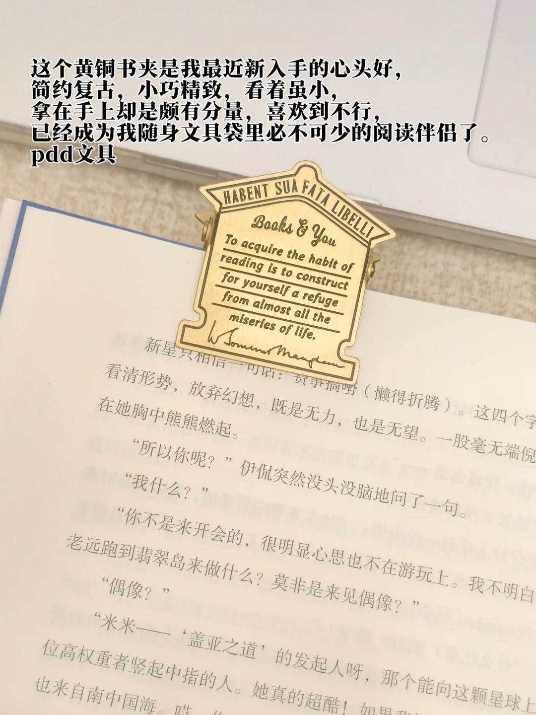 “培养阅读爱好就是为自己建造一座避难所,可抵挡人生中近一切苦难。”这个黄铜书夹是我最近新入手的心头好,简约复古,小巧精致,看着虽小,拿在手上却是颇有分量,喜欢到不行,已经成为我随身文具袋里必不可少的阅读伴侣了。
