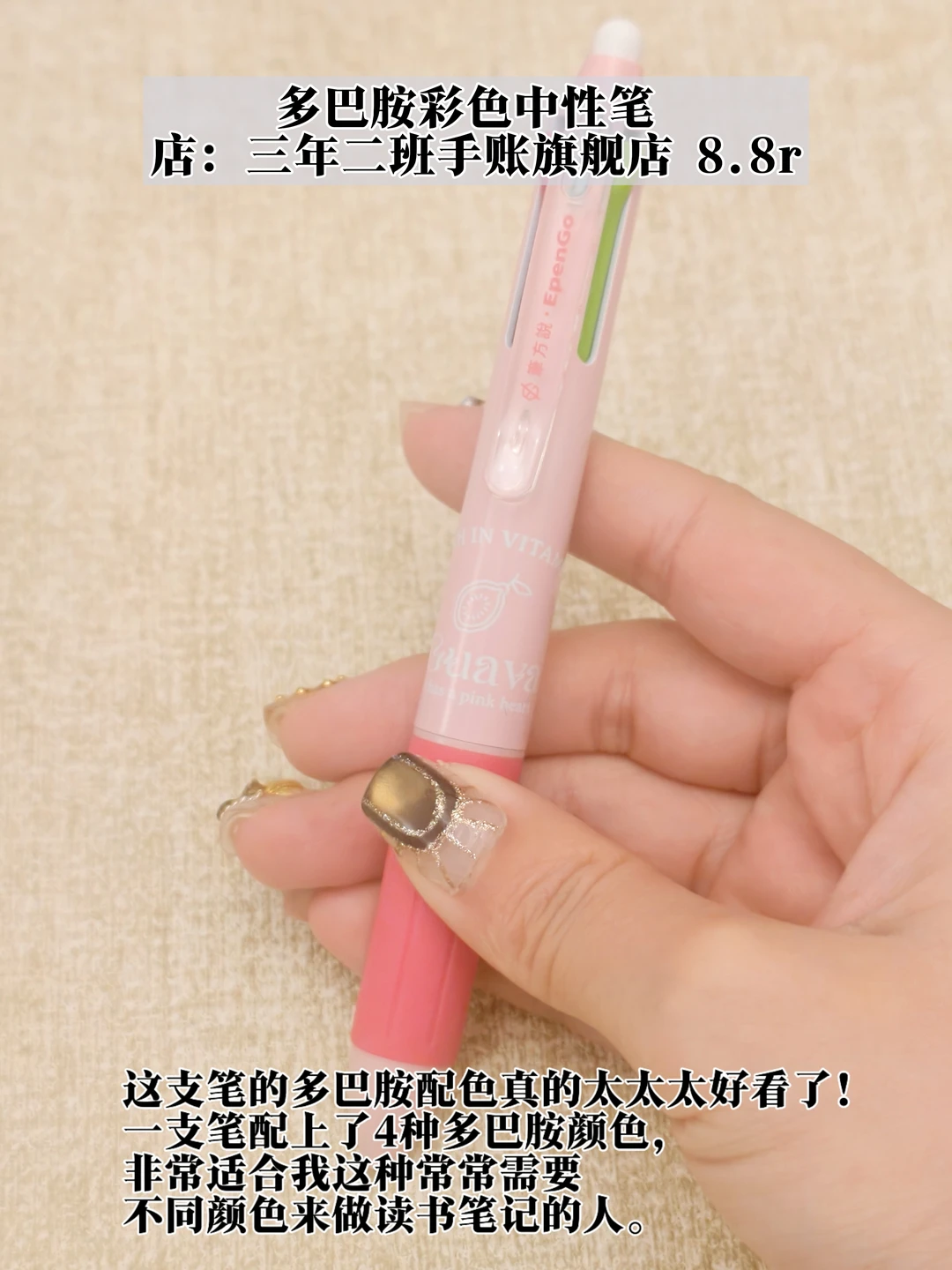 这支笔的多巴胺配色真的太太太好看了!一支笔配上了4种多巴胺颜色,非常适合我这种常常需要不同颜色来做读书笔记的人。而且握起来手感舒适,书写顺滑,流畅度也高,真是满足了老夫的少女心啊!