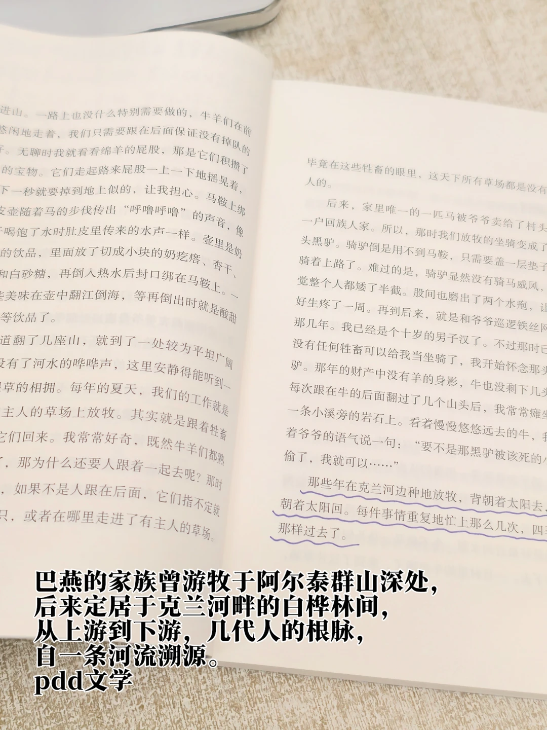 这部非虚构散文集以哈萨克族少年巴燕的视角,讲述北疆阿勒泰地区的乡居日常,呈现半农半牧的当代哈萨克族生活。巴燕的家族曾游牧于阿尔泰群山深处,后来定居于克兰河畔的白桦林间,从上游到下游,几代人的根脉,自一条河流溯源。