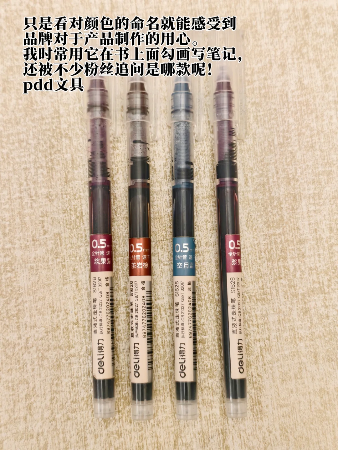 这款得力的国风系列直液式走珠笔也是我回购了N次的好物!书写那叫一个顺滑,出水也很快,这个系列的颜色也做得很绝,浆果紫、空月蓝、茶岩棕...只是看对颜色的命名就能感受到品牌对于产品制作的用心。我时常用它在书上面勾画写笔记,还被不少粉丝追问是哪款呢!