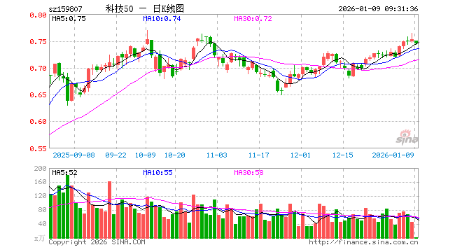 1月9日,科技ETF易方达(159807)开盘跌0.40%,报0.750元。科技ETF易方达(159807)重仓股方面,中际旭创开盘跌3.28%,恒瑞医药跌0.03%,寒武纪跌1.66%,中芯国际跌0.77%,海光信息跌1.52%,澜起科技跌0.82%,京东方A跌0.23%,迈瑞医疗涨0.14%,中兴通讯跌0.15%,兆易创新跌1.62%。
