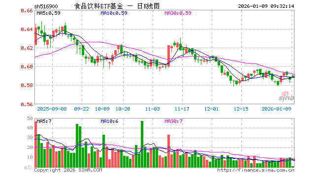 1月9日,食品饮料ETF基金(516900)开盘涨0.68%,报0.590元。食品饮料ETF基金(516900)重仓股方面,贵州茅台开盘涨0.33%,五粮液涨0.14%,伊利股份跌0.18%,泸州老窖涨0.85%,山西汾酒涨1.63%,海天味业涨0.26%,东鹏饮料涨0.05%,洋河股份涨0.08%,今世缘涨0.03%,古井贡酒涨0.43%。