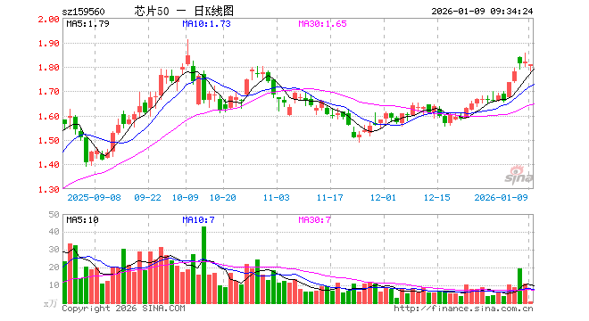 1月9日,芯片ETF景顺(159560)开盘跌0.99%,报1.802元。芯片ETF景顺(159560)重仓股方面,中芯国际开盘跌0.77%,寒武纪跌1.66%,海光信息跌1.52%,北方华创跌0.72%,澜起科技跌0.82%,兆易创新跌1.62%,中微公司跌3.89%,豪威集团涨0.00%,芯原股份跌0.06%,长电科技涨0.69%。