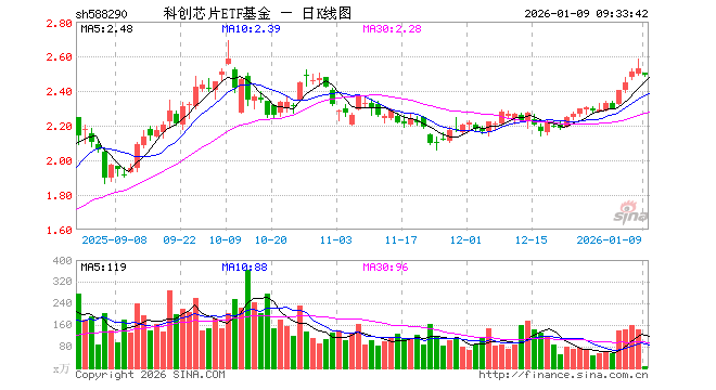 1月9日,科创芯片ETF基金(588290)开盘跌0.99%,报2.500元。科创芯片ETF基金(588290)重仓股方面,海光信息开盘跌1.52%,澜起科技跌0.82%,中芯国际跌0.77%,寒武纪跌1.66%,中微公司跌3.89%,芯原股份跌0.06%,华虹公司跌1.14%,沪硅产业跌1.90%,华海清科跌0.16%,晶晨股份跌0.27%。
