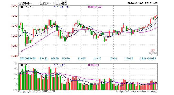 云计算ETF(159890)业绩比较基准为中证云计算与大数据主题指数收益率,管理人为招商基金管理有限公司,基金经理为房俊一,成立(2021-03-25)以来回报为79.24%,近一个月回报为6.64%。