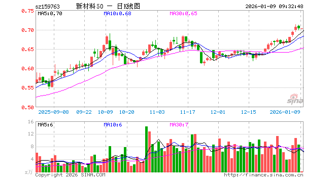 1月9日,新材料ETF基金(159763)开盘涨0.00%,报0.702元。新材料ETF基金(159763)重仓股方面,宁德时代开盘跌0.01%,北方华创跌0.72%,万华化学涨0.39%,隆基绿能跌0.85%,华友钴业跌1.48%,三环集团涨4.43%,通威股份跌3.05%,三安光电涨2.82%,天赐材料跌0.88%,国轩高科涨0.05%。