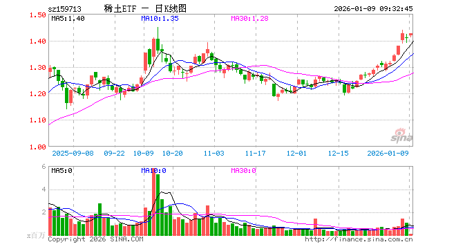 1月9日,稀土ETF(159713)开盘涨0.57%,报1.417元。稀土ETF(159713)重仓股方面,北方稀土开盘跌0.43%,卧龙电驱跌0.30%,领益智造跌0.73%,中国稀土跌0.12%,盛和资源跌0.09%,金风科技涨9.99%,格林美跌0.91%,包钢股份涨0.00%,厦门钨业跌0.46%,中国铝业跌1.17%。