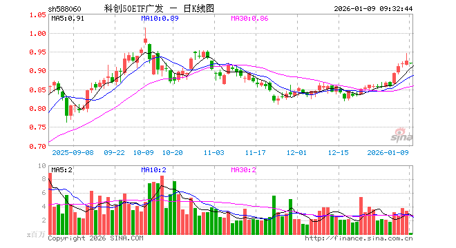 1月9日,科创50ETF广发(588060)开盘跌0.76%,报0.919元。科创50ETF广发(588060)重仓股方面,海光信息开盘跌1.52%,中芯国际跌0.77%,寒武纪跌1.66%,澜起科技跌0.82%,中微公司跌3.89%,联影医疗涨0.79%,金山办公跌0.16%,芯原股份跌0.06%,石头科技涨0.00%,传音控股跌0.33%。