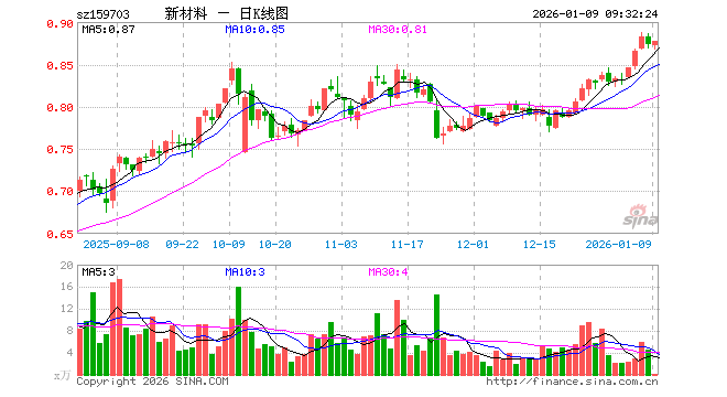 1月9日,新材料ETF(159703)开盘跌0.11%,报0.872元。新材料ETF(159703)重仓股方面,宁德时代开盘跌0.01%,北方华创跌0.72%,万华化学涨0.39%,隆基绿能跌0.85%,华友钴业跌1.48%,三环集团涨4.43%,通威股份跌3.05%,三安光电涨2.82%,天赐材料跌0.88%,国轩高科涨0.05%。