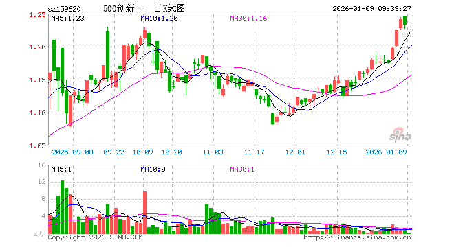 1月9日,500成长ETF(159620)开盘跌0.24%,报1.230元。500成长ETF(159620)重仓股方面,长川科技开盘跌2.15%,科沃斯涨0.24%,百济神州跌1.21%,广合科技跌0.37%,九号公司涨0.00%,晶晨股份跌0.27%,瑞芯微跌0.98%,恒玄科技跌1.64%,三美股份跌0.42%,中瓷电子跌1.89%。