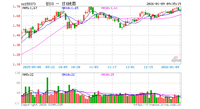 1月9日,创业板50ETF嘉实(159373)开盘跌0.30%,报1.655元。创业板50ETF嘉实(159373)重仓股方面,宁德时代开盘跌0.01%,中际旭创跌3.28%,东方财富涨0.00%,新易盛跌3.25%,阳光电源跌0.92%,胜宏科技跌1.59%,汇川技术跌0.15%,迈瑞医疗涨0.14%,亿纬锂能涨0.00%,同花顺跌0.31%。