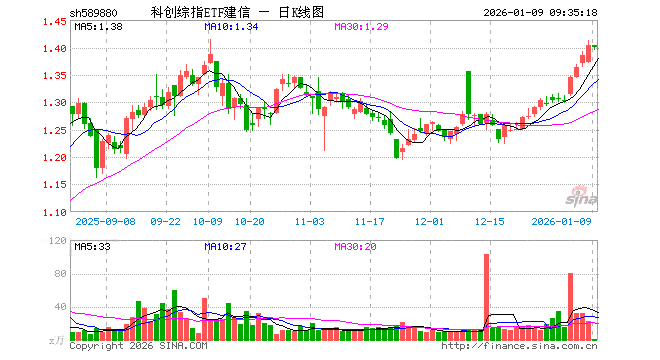 科创综指ETF建信(589880)业绩比较基准为上证科创板综合指数收益率,管理人为建信基金管理有限责任公司,基金经理为葛鲁禹,成立(2025-02-20)以来回报为40.61%,近一个月回报为9.82%。