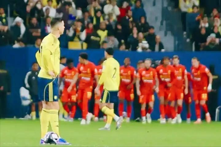 C罗进球,利雅德胜利1:2输球。看了守门员这离奇失误,谁看谁不恼火,你叫C罗怎么