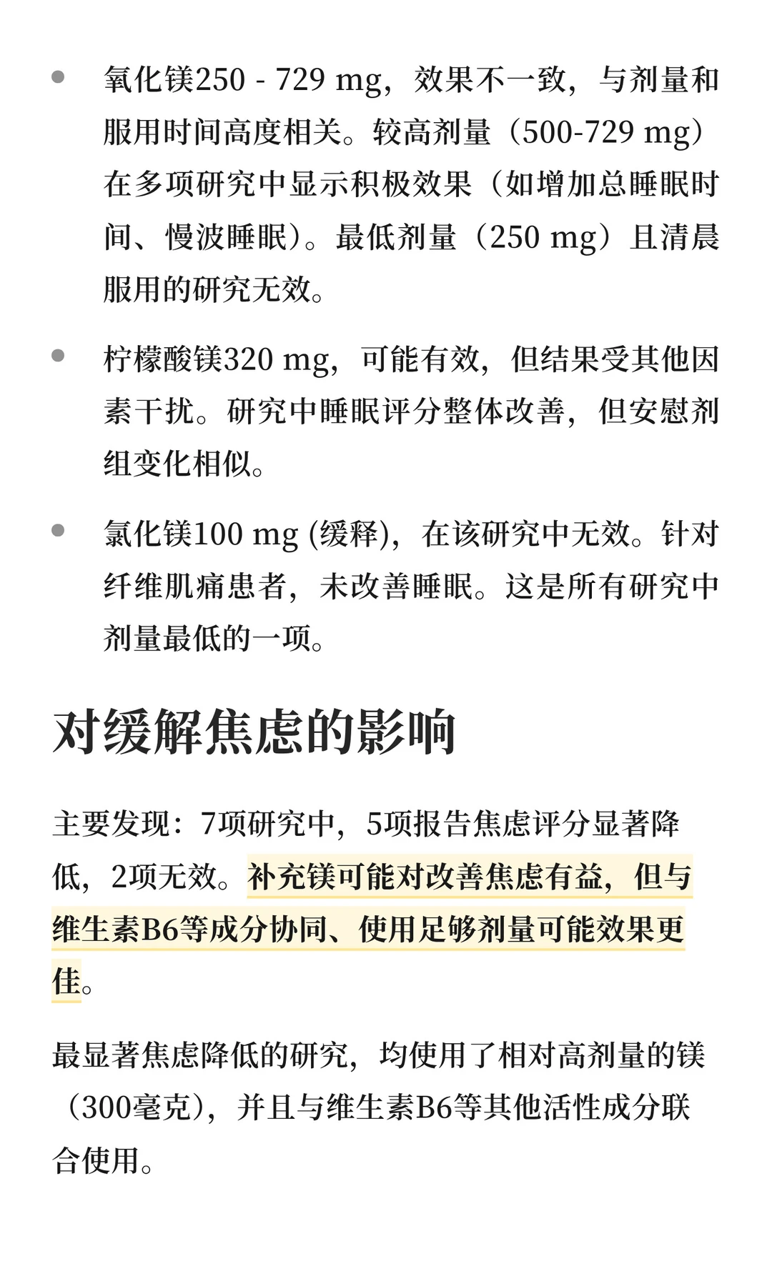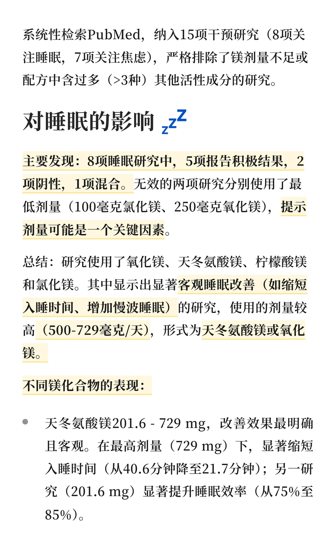它并不是安眠药的作用,让你马上入睡,主要是让你放松下来,不胡思乱想,所以一般建议睡前1-2小时前吃。之前看过一个研究,是说吃完微囊氧化镁后,血浆浓度在1-6小时显著并持续地升高。而常见的睡眠类补充剂(褪黑素/gaba)都是建议睡前30分钟吃。