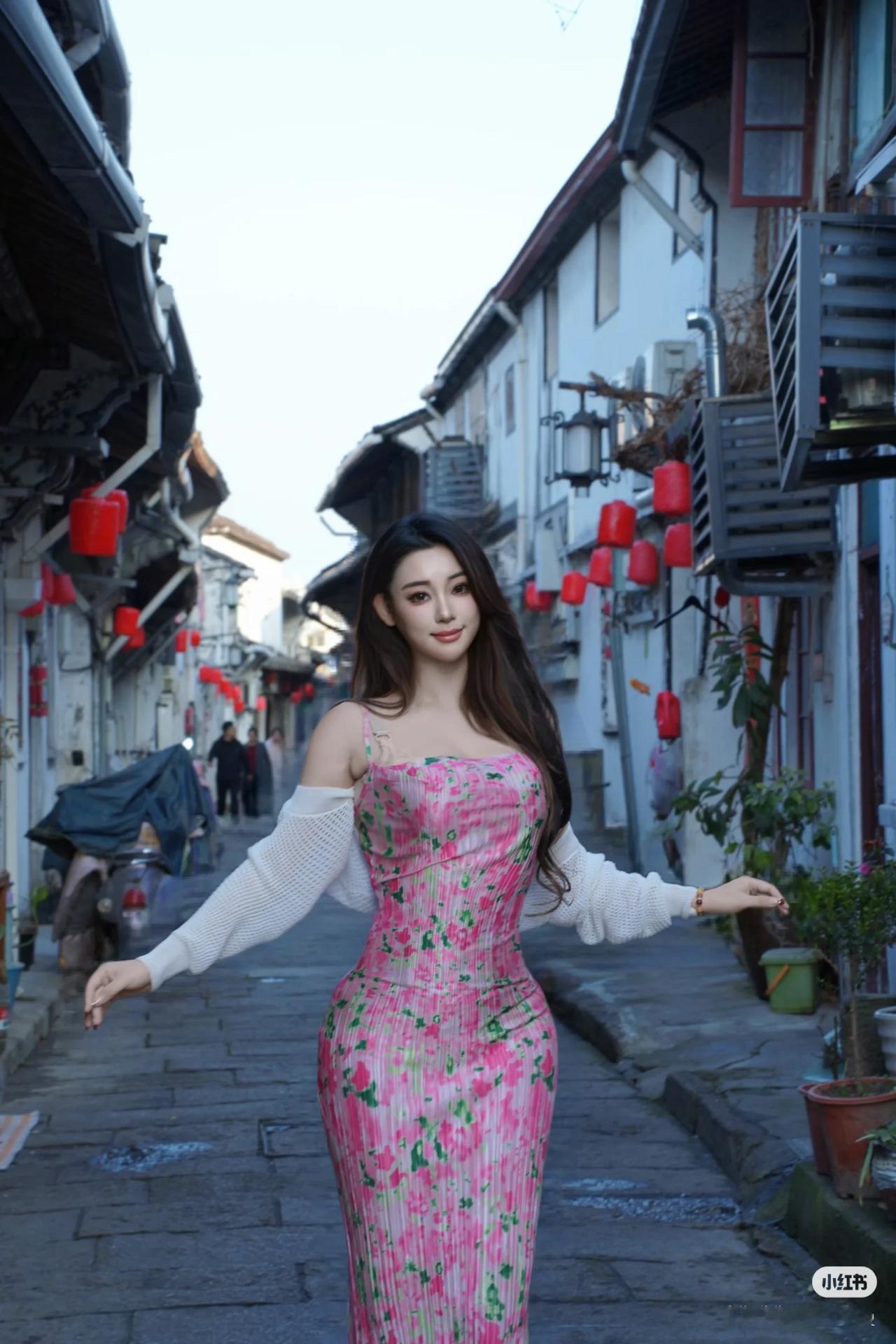 穿粉色裙子的女孩在拍写真,这微笑能迷倒一片,眯眼动作更是一绝,比心举动看着我心都