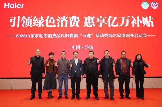 趁新政,焕新家,引领绿色消费,惠享亿万补贴。1月8日,2026山东家电等消费品以旧换新"五进"活动暨海尔家电国补启动会正式拉开帷幕。