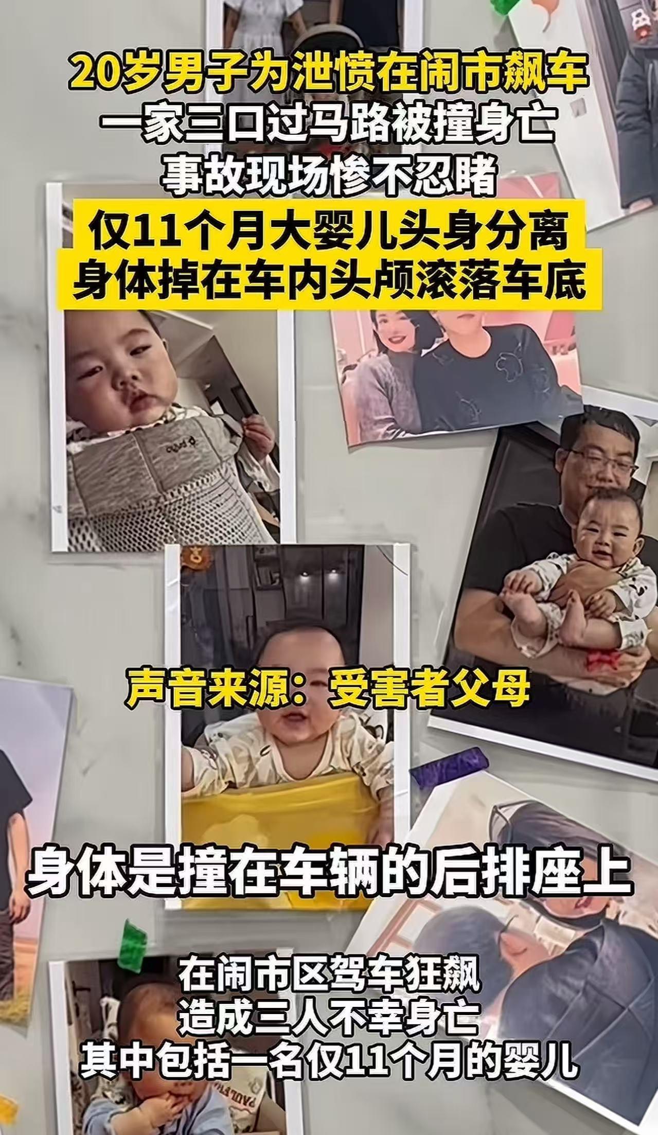 男子与女友吵架飙车泄愤,撞死无辜的一家三口!一审法院判决:死缓!受害者母亲:“必须死刑立即执行!这样的结果我不能接受!”网友:这都不立即死刑!简直是天理难容了! 2024年10月2日,江西景德镇,晚高峰的闹市区,限速40公里的主干道上,一辆轿车如脱缰野马般呼啸而过——时速129公里。 仅仅两秒,一家三口被撞飞:一对年轻夫妻,怀里还抱着刚出生358天的婴儿。 三条鲜活的生命,瞬间归零。 而这一切,竟起因于一场荒唐至极的争吵—— 20岁的廖某和女友在车里,为“鹦鹉什么时候开始学舌”吵了起来。一怒之下,他猛踩油门,在车流密集的城区飙车泄愤。 更令人发指的是,撞人后,廖某还抽烟、玩手机,甚至跟朋友调侃:“这小孩头还挺硬……” 事后调查显示,他的车速超限速3倍以上,早已不是“开快了点”的问题,而是彻底将公共道路变成了“死亡赛道”。 车辆制动距离失控、方向难以掌控,对不特定多数人的生命构成了直接、广泛的致命威胁——这已不是普通交通事故,而是以危险方法危害公共安全。 案发后,廖某及其家人试图“私了”: 父亲向死者母亲提出赔80万,“买断”三条人命,甚至大言不惭地说:“等我儿子出来,还能给你养老。” 受害者母亲胡女士当场崩溃:“80亿我都不要!我会要一个杀我儿子、儿媳和孙子的人给我养老?你是在侮辱我吗?” 案件进入司法程序。检方以“以危险方法危害公共安全罪”提起公诉。 2026年1月9日,景德镇中院一审判决:死刑,缓期两年执行。 法院认为,廖某虽未蓄意杀人,但明知节假日晚高峰车多人多,仍以极端危险方式驾驶,造成三人死亡,情节恶劣、后果极其严重。但鉴于他事发后有紧急避让动作(踩刹车、打方向),属于“间接故意”,且有自首情节,故未判立即执行死刑。 然而,这一判决,让受害者家属无法接受! 此事引发热议,有网友说,两死缓两年然后就无期。然后不断减刑,十多年就出来了,而受害者两个家庭都是独生子女。 也有网友说,看了当时的报道,现场极其惨不忍睹,凶手当时还笑,这样的败类就应该直接死刑,支持上诉,还死者一个公道。 还有网友说,通报很清楚了,事情发生时紧急避让了,所以才能免于一死。被告造成的后果虽然很严重,但积极抢救,投案自首情节,而且被告人与被害人没有矛盾,只是放任结果的发生,属于间接故意,判死缓很合理。 这起悲剧最刺痛人心的,不是车速有多快,而是人性有多冷。 为一句“鹦鹉几月学舌”就能在闹市飙到129码,撞死人后还能谈笑风生——这不是“一时冲动”,而是长期缺乏对生命最基本的敬畏。 而更荒诞的是,当三条命被碾碎成新闻标题时,加害者家庭竟试图用80万“买平安”,仿佛人命可以标价,正义可以打折。 法律讲“罪责刑相适应”,但公众要的不只是法律逻辑,更是道德底线的捍卫。 死缓或许符合程序正义,却狠狠撕裂了社会对“恶”的基本共识: 当一个人把公共道路当成情绪发泄场,把无辜路人当成泄愤道具,他的“间接故意”,与直接杀人又有多少本质区别? 更值得警惕的是,这种“飙车泄愤”并非孤例。 多少年轻人把豪车当玩具,把马路当赛道,以为出事最多赔钱了事? 可他们忘了:方向盘握在手里,不是特权,而是责任;速度越快,背负的生命就越重。 今天若因“有避让”“有自首”就轻纵此类行为,明天就会有更多人觉得——“只要不是亲手推人下楼,飙车撞死人也不用偿命。” 法律可以给机会,但社会不能失去对恶的痛感。否则,那被撞飞的,将不只是一个婴儿,而是整个时代对生命的尊重。