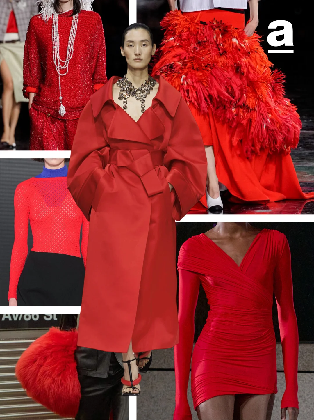 该色彩是「欢愉高饱和」趋势的点睛之笔,浓郁红调中隐现冷调紫感,中和了热烈感却不艳俗,自带复古深邃的情绪张力,哑光质感显高级、丝光质感添优雅,适合打造丝绒半身裙与针织开衫造型。