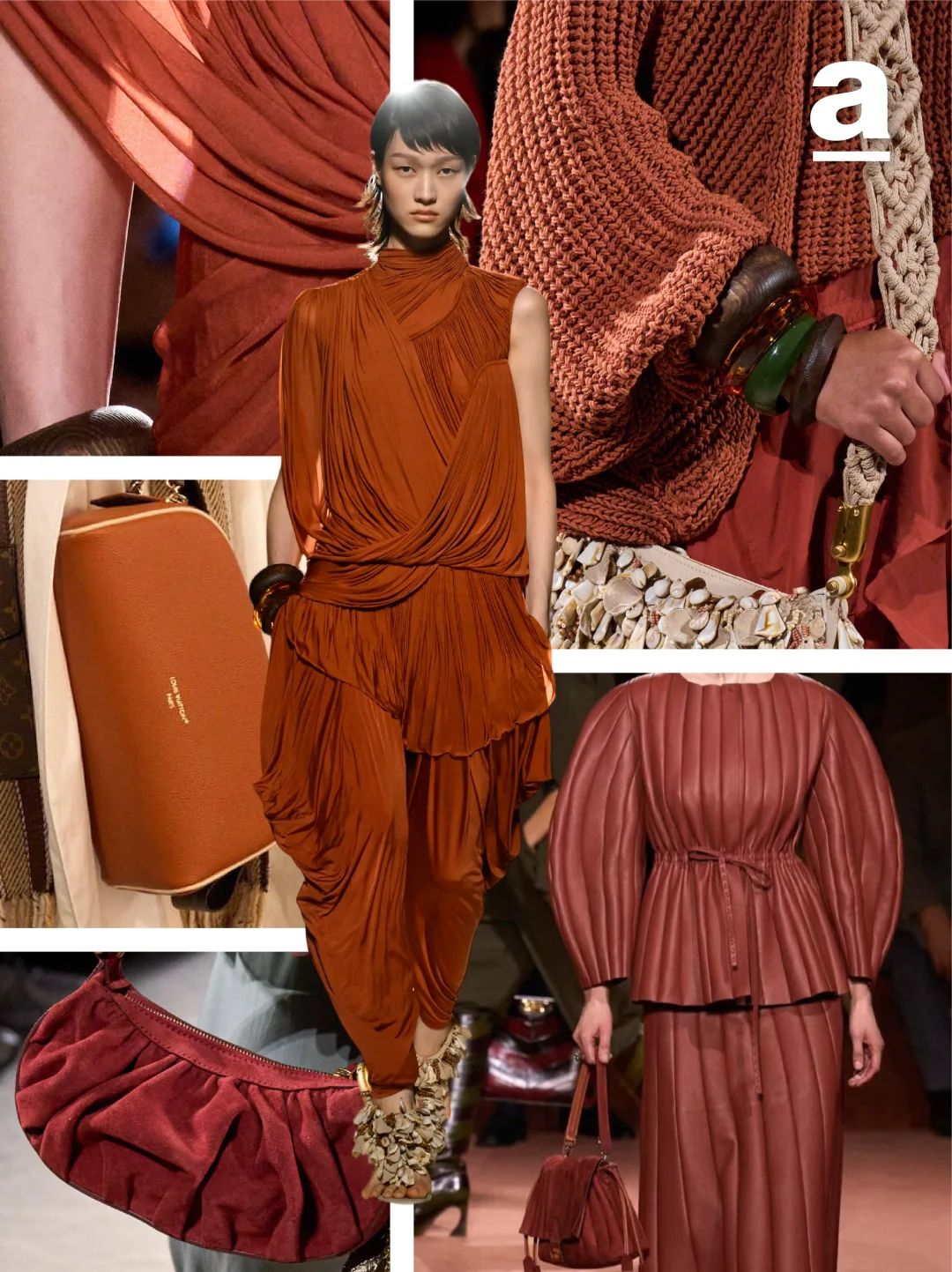 该色彩是「隐性奢华」风格的代表色,浅驼色与浅灰交融出如阳光烘焙茶梗般的温润质感,暖而不艳、柔和百搭,自带治愈松弛感,既能驾驭精纺羊毛西装、软糯针织开衫的通勤优雅,也能hold住复古阔腿裤的度假随性。