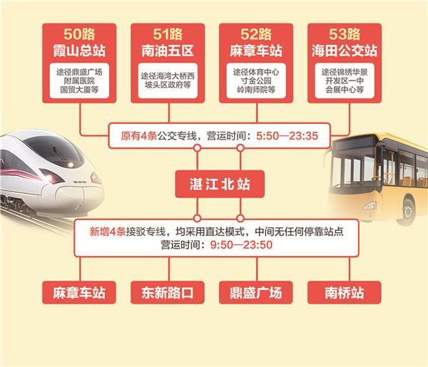1月7日起,湛江市正式增开4条高铁直达接驳专线,与现有常规公交线路形成互补,打造“点对点”高效通勤通道。