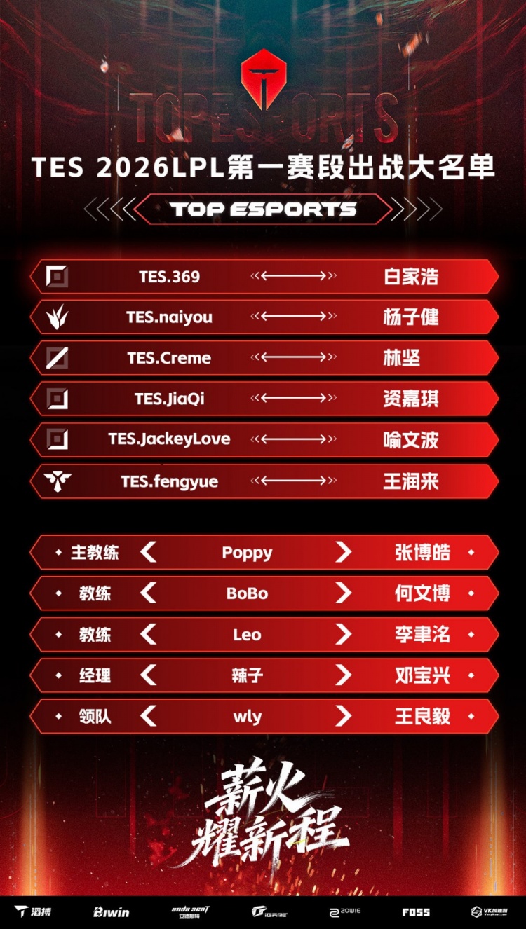 TES官方公布第一赛段出战大名单,仅AD JiaQi和JackeyLove轮换