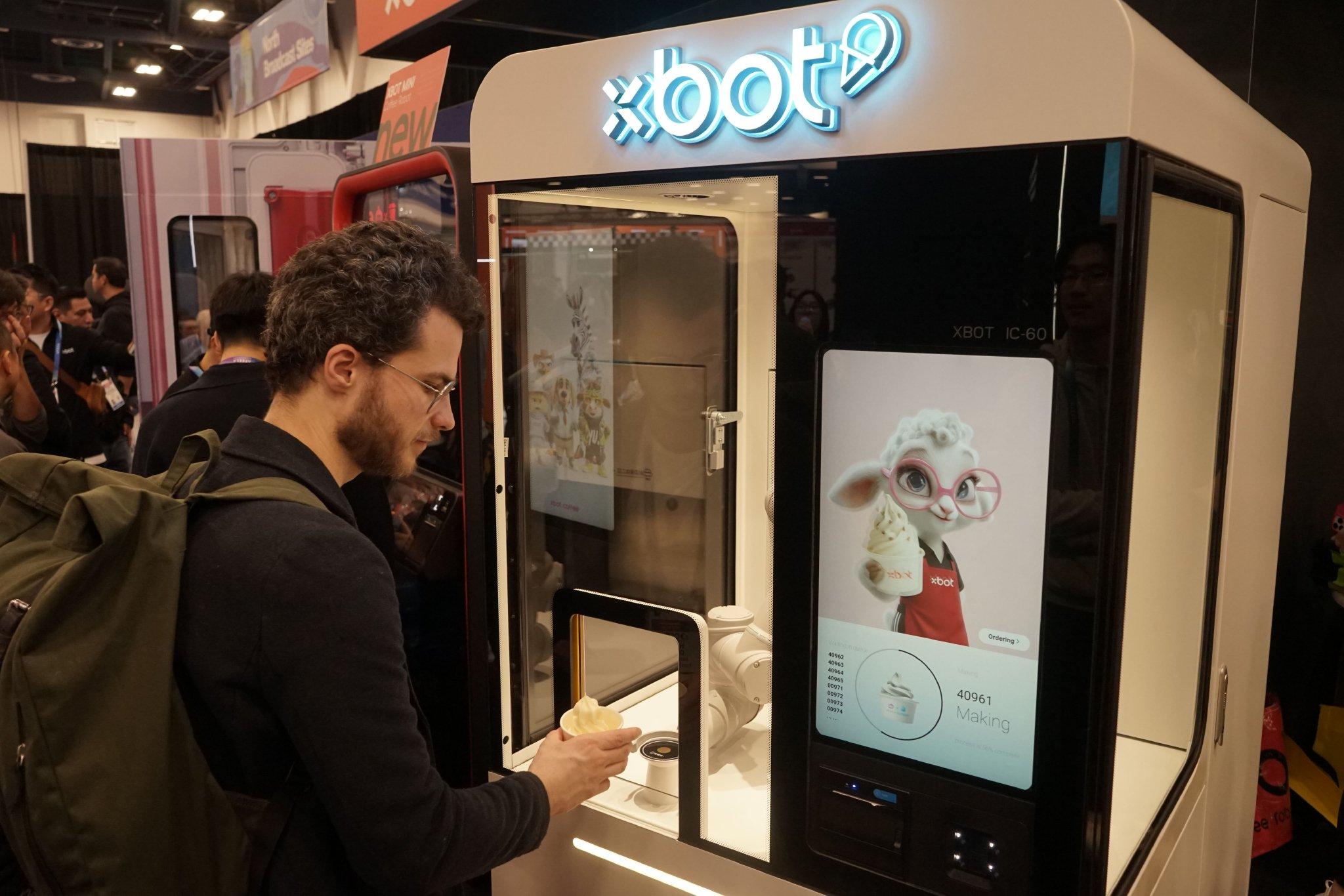 2026年1月7日,人们在美国拉斯维加斯消费电子展(CES)体验影智XBOT冰淇淋机器人。新华社发(曾慧摄)
