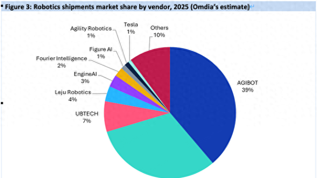 报告指出,2025年全球人形机器人市场迈入快速增长阶段,全年总出货量预计达1.3万台。中国厂商在规模化量产与出货量方面表现突出,其中智元以超过5100台的年度出货量,占据全球39%的市场份额,在出货量与市场份额两项关键指标上均位居全球第一。