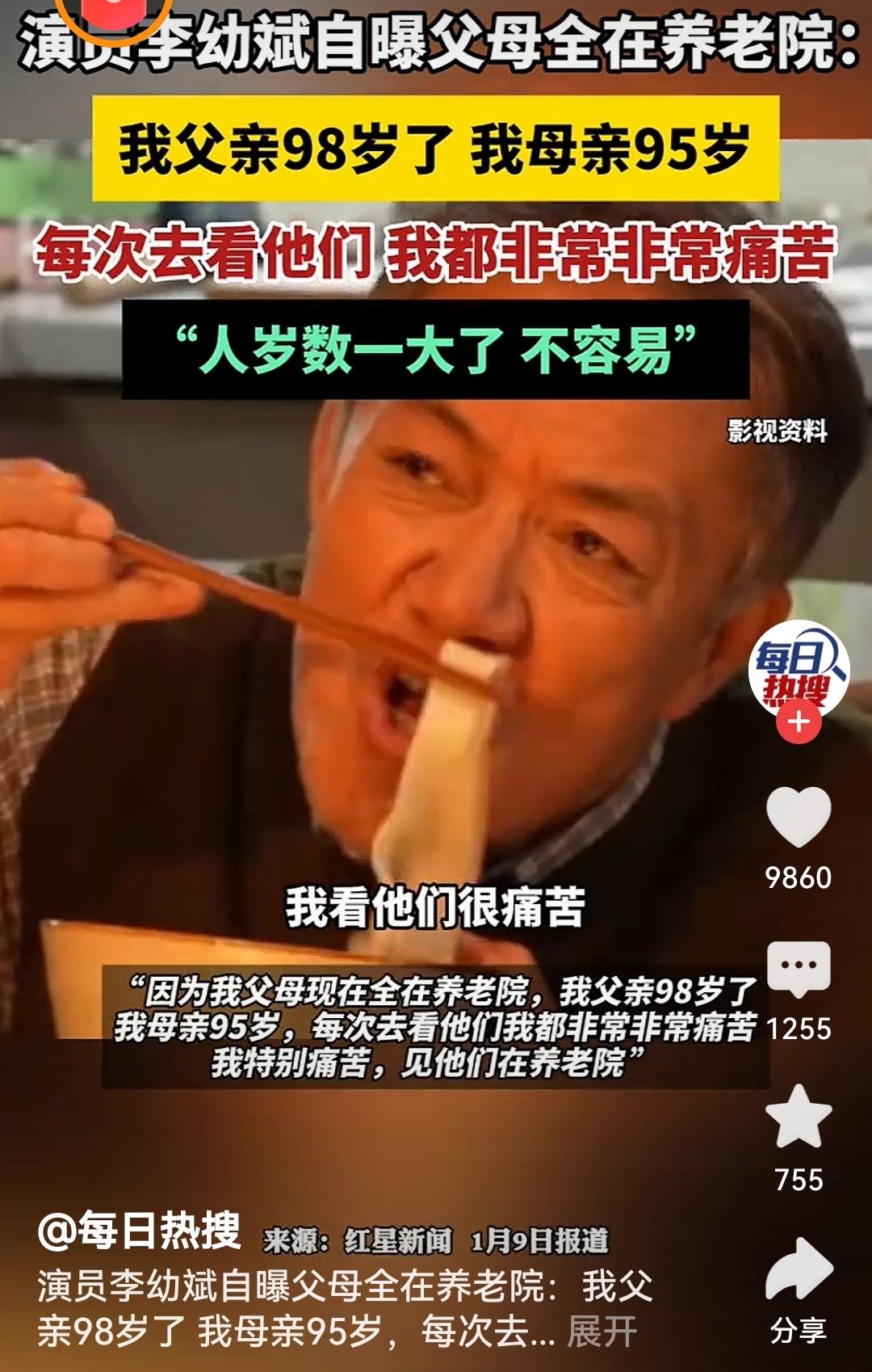 李幼斌自曝父母全在养老院李幼斌的这番话道尽了为人子女的无奈与牵挂,父母老去是每个