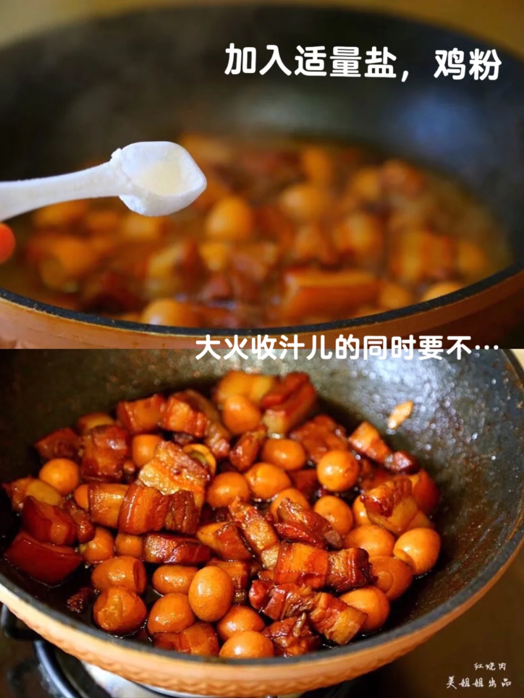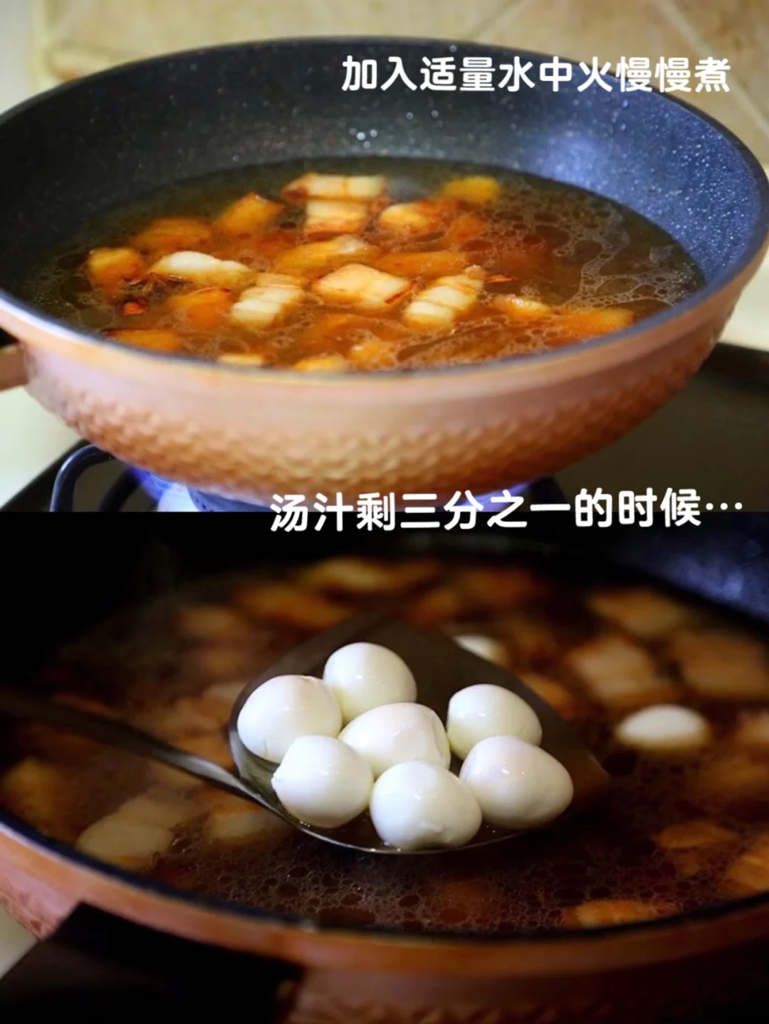 14.汤汁剩一丢丢的时候转大火收汁儿 记得尝下味道再加盐,因为前面生抽有咸度哈 【要注意的是啊在收汁儿的时候要不停的翻炒,不然很容易糊锅 】15.嗯哼可以出锅啦,不忽悠你们哈,拍照之前啊啊我已经好几块肉肉下肚了。这样做出来的肉肉和鸡蛋都具好吃 特别是蛋蛋,一口一个