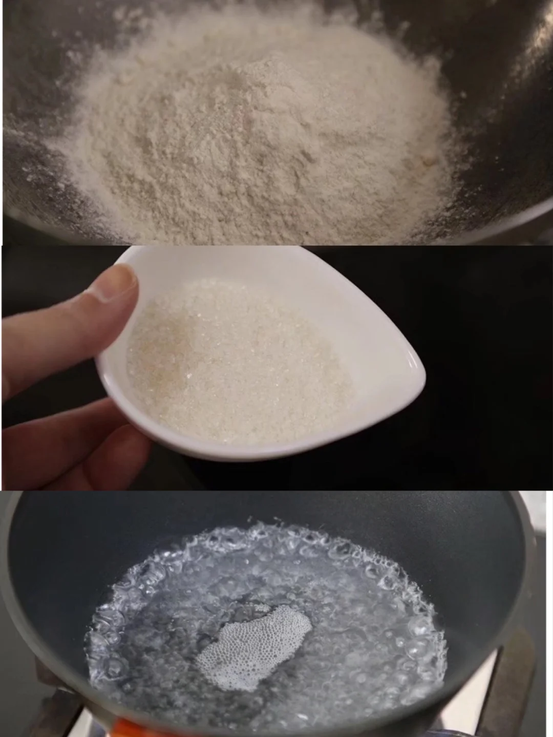 2.煮锅里倒入和面的水,加入准备好的白糖