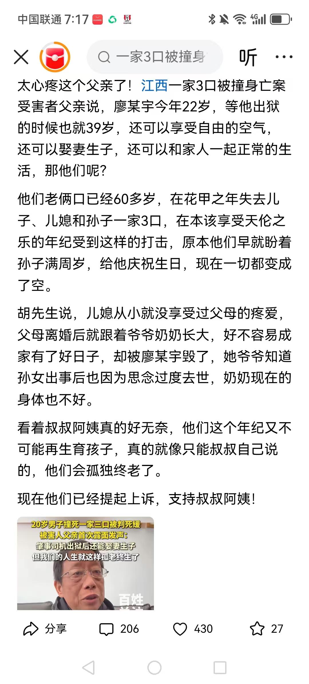 太心疼这个父亲了!现在几乎很少死刑,但就是这个原因,让一些人渣肆无忌惮,感觉可以用钱用关系解决一切问题。 既然是以“危险方式危害公共安罪”被起诉,后果极其严重,并且无认罪悔罪表现,家人也态度恶劣,为什么仅判死缓? 22岁的年纪,酿成无法挽回的悲剧,毁掉一个家庭的幸福,必须依法严惩,告慰逝者! 媒体发力,群众发声,或许可以改判死刑。多年前的云南姐弟被害案。一审死缓,二审经过最高法介入,最终死刑立即执行。 终于知道现在为啥那么多各种方式的杀人案件了,不尊重生命怎么繁衍生命? 老头儿学车去,每天都练练车,天天开车他们家门口晃悠,一年之内肯定能碰到,春节了,清明节了,中秋节,五一十一的,有的是机会。