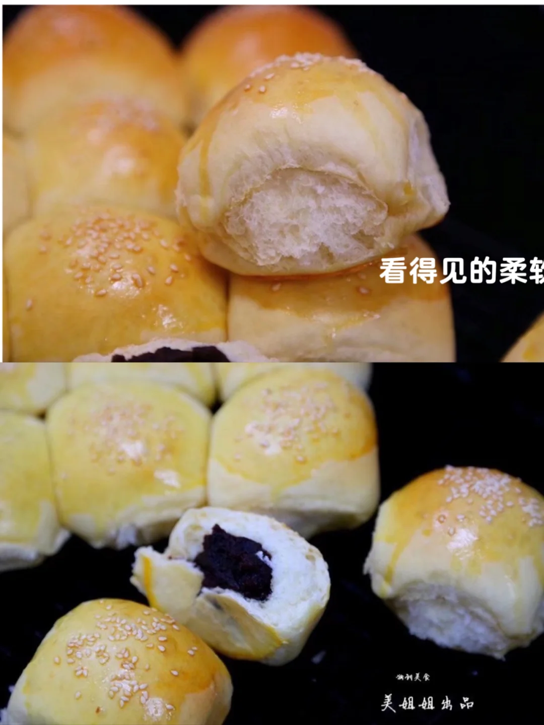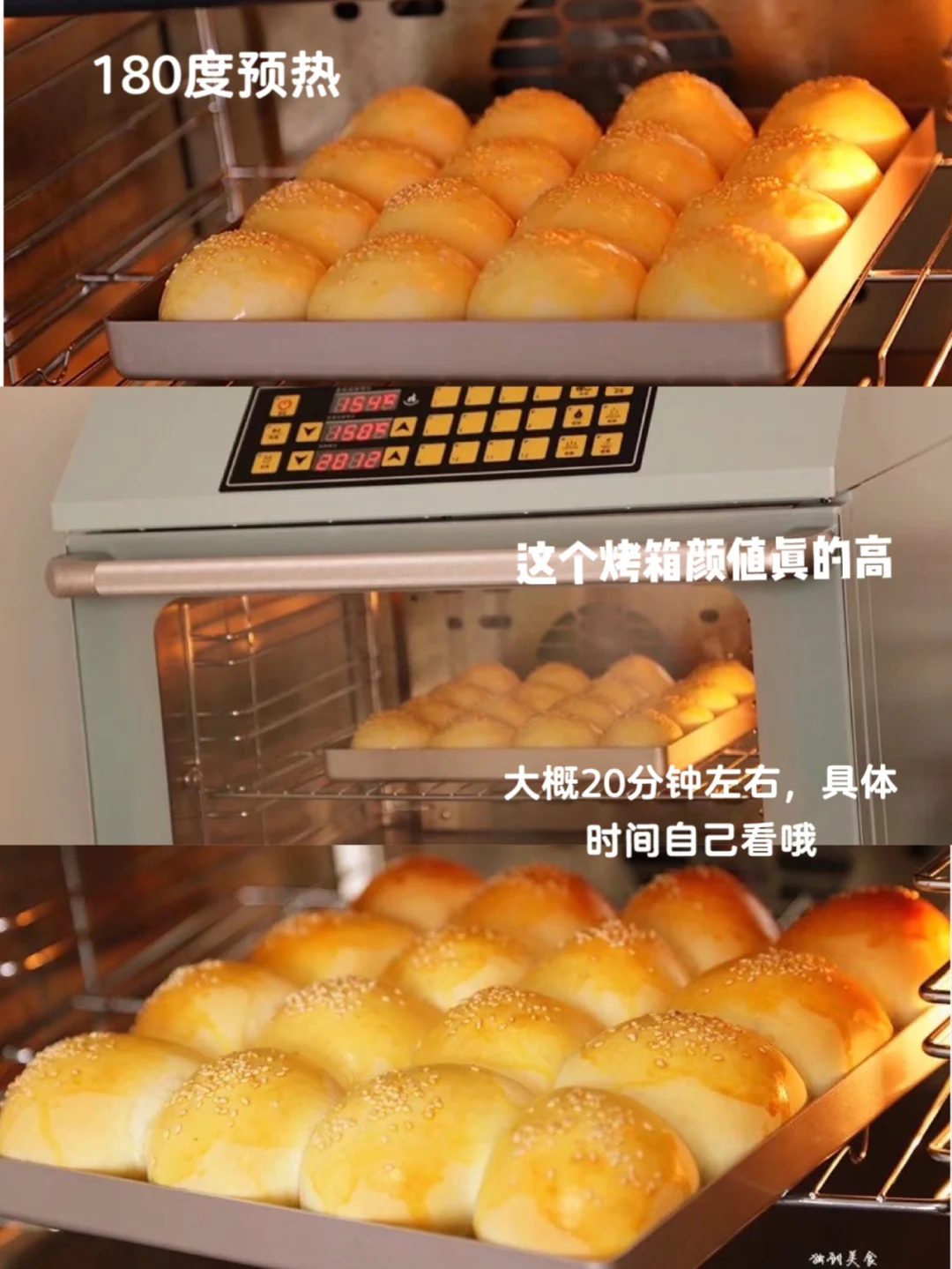 19.看着慢慢大起来,满屋子的香味儿,就觉得满满的幸福感 嗯哼,这样就可以出炉啦,不得不说这个烤箱真的好 完全不用管,基本不用担心上色问题20.撕开一个,太柔软了,加上是自己炒得馅儿 一个根本满足不了呀