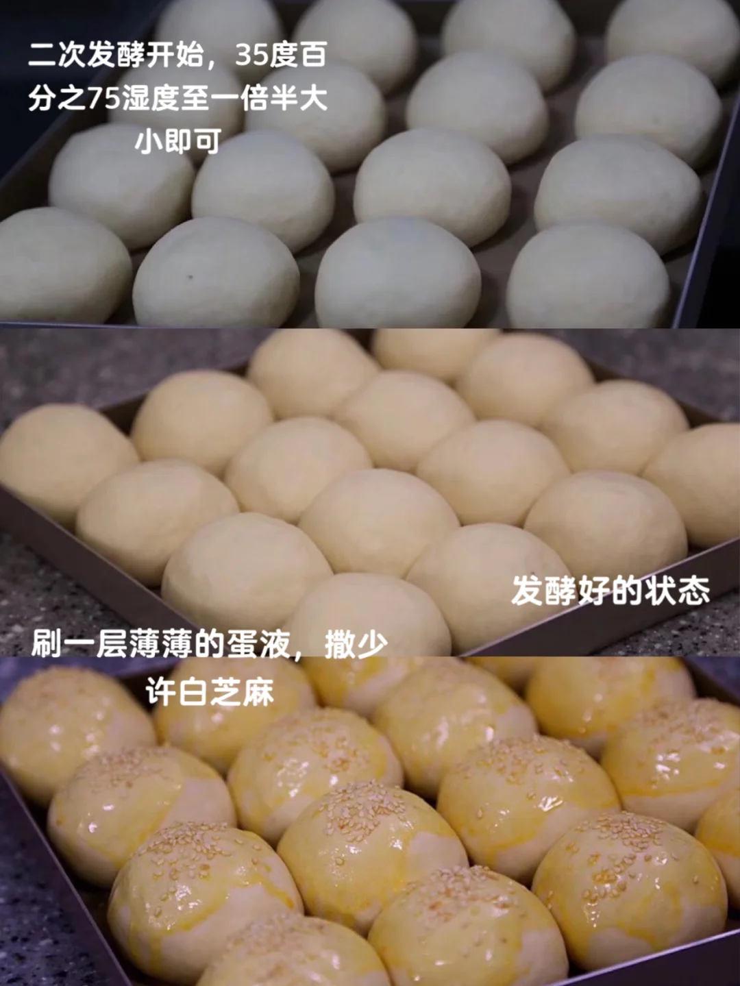 15.给你们看下发酵好的状态,跟刚才完全不一样啊16.刷蛋液,撒少许白芝麻装饰,烤箱预热180度