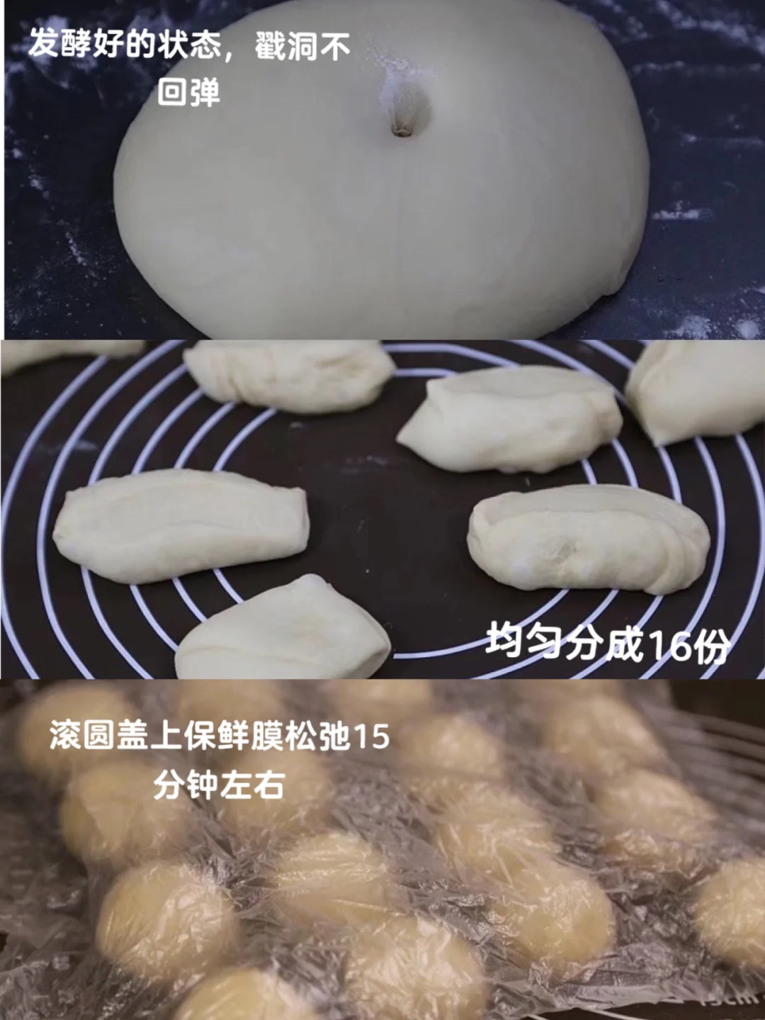 9.滚圆盖上保鲜膜松弛15分钟左右