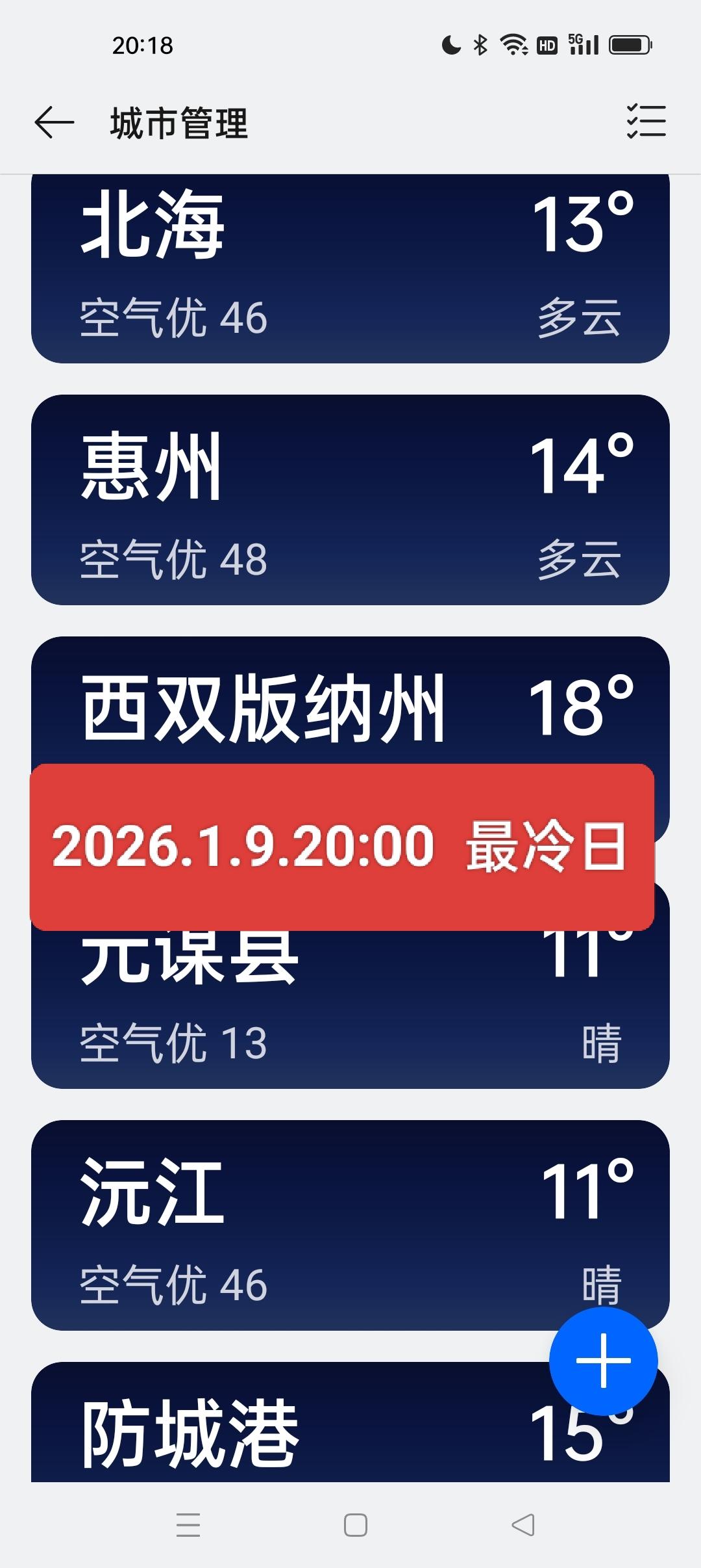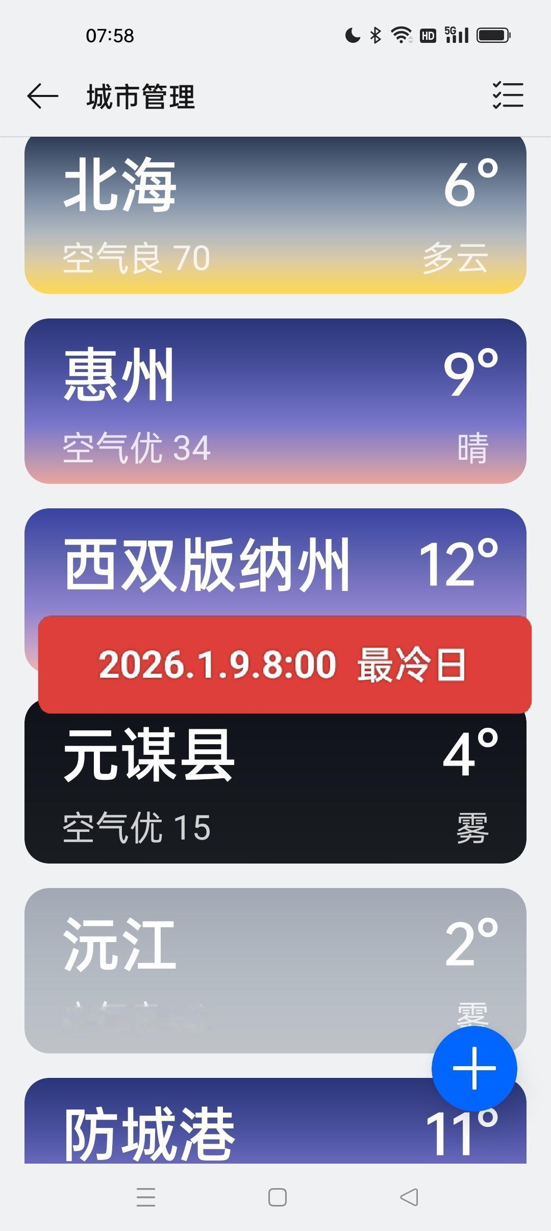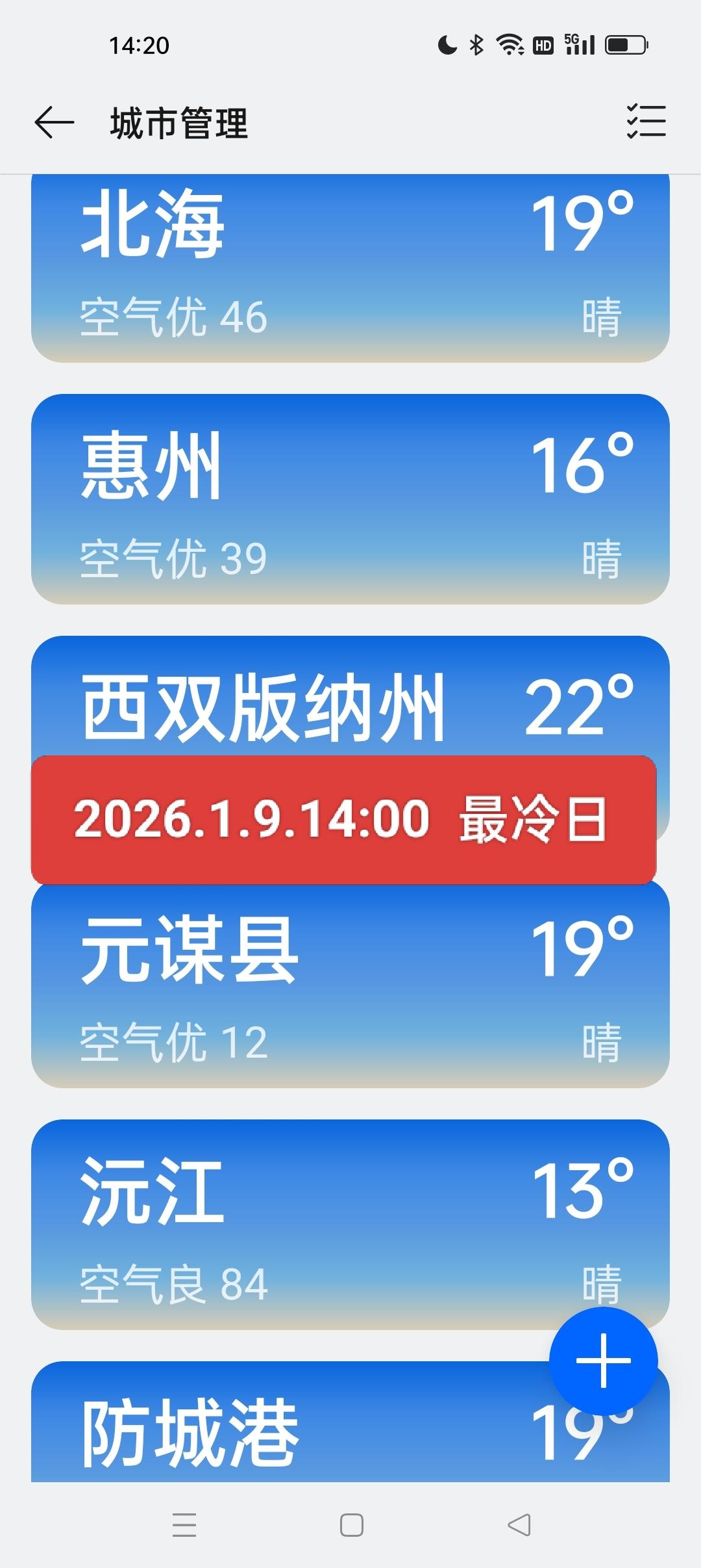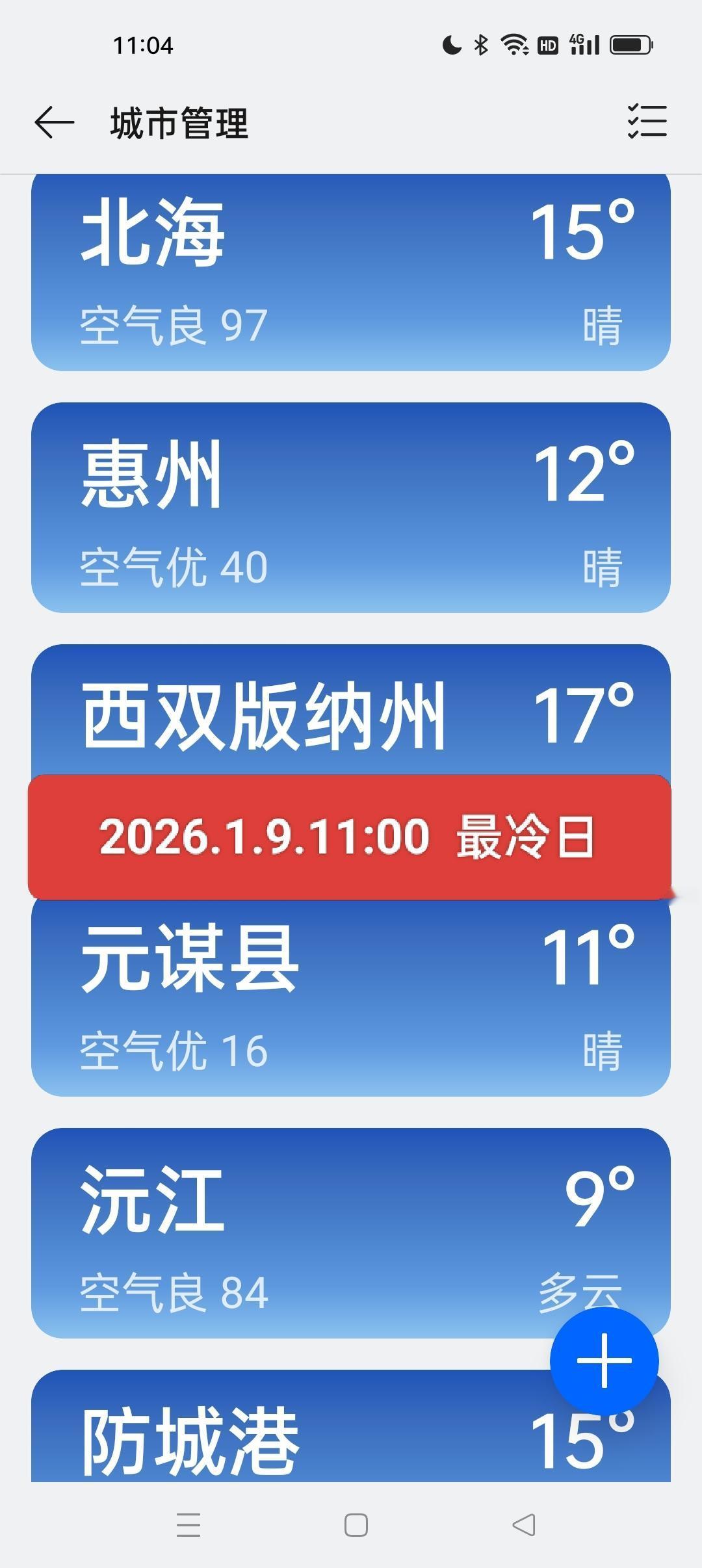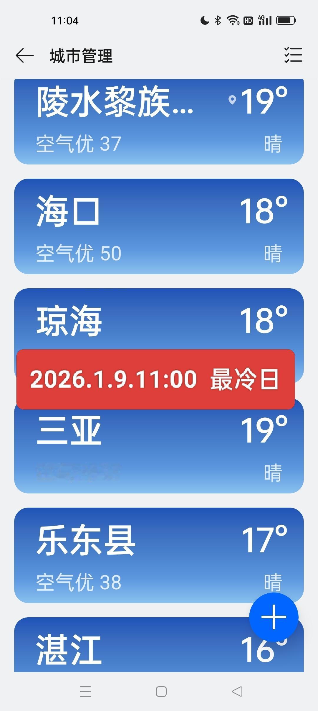 自驾海南之旅46——避寒过冬 全国各地主要避寒过冬市县最冷日,1月9日天气实况