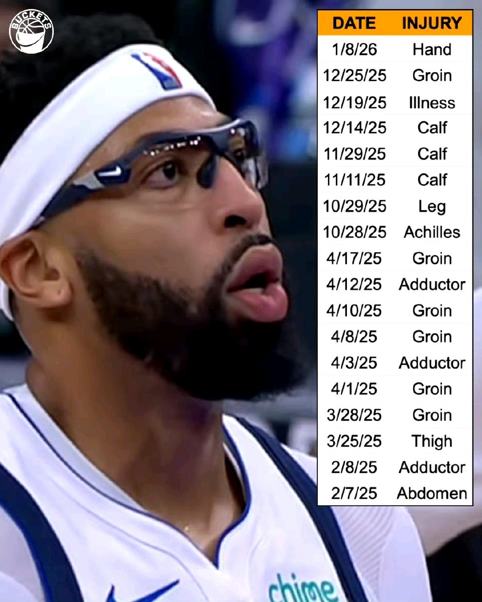 玻璃人能值多少,会有哪个队要呢?浓眉又伤了,这次伤的是左手韧带。 浓眉加盟独行侠不到一年,遭遇了18次伤病。一共打了29场常规赛,缺席了42场,出勤率仅40.8%。 戴维斯在这29场比赛中已经遭遇了6处不同部位的伤病。分别是: 内收肌拉伤、视网膜脱离、小腿挫伤、跟腱酸痛、腹股沟拉伤、左手韧带损伤。