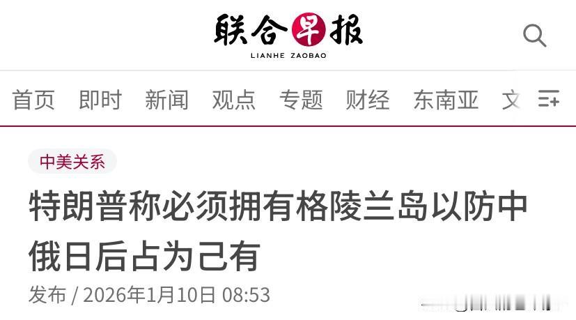 特朗普明说了:为了防止中俄,他赌上国运,也要这么干 1月10日,据路透社报道特朗普在白宫与美国油企高管会晤时,他再次提到了格陵兰岛的问题,表示不管美国人3.5亿人怎么想,不管欧洲人怎么想。他必须对格陵兰岛做点事情,如果他不这样干的话,俄罗斯和中国将会接管格陵兰岛,他接受不了中国和俄罗斯当美国人的邻居。 同时他再次强调,虽然美国在格林莱岛上面有驻军,但是军事力量太少,不足以保证格陵兰岛的防务,所以不管是抢还是买格陵兰岛他要定了, 评论2句:特朗普这份赤裸裸的野心,不过是将在委内瑞拉掠夺石油的霸权再度照本搬课,用到丹麦身上而已。 什么防务安全?什么中俄威胁,这都是他为了掠夺格陵兰岛的稀土和油气资源找的借口而已。 委内瑞拉的事件还未平息,特朗普多次及冒进的提起强占格陵兰岛,他以为外界看到他在大秀美国的肌肉,殊不知他在极度膨胀和作死的道路上越走越远