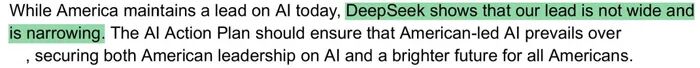 “虽然美国目前在人工智能领域保持领先,但DeepSeek显示我们的领先优势并不大,而且正在缩小。”——OpenAI
