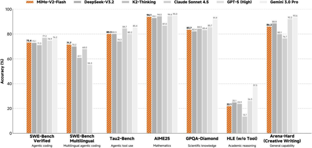 2025年的收尾,还有12月16日小米MiMo-V2-Flash的发布值得关注。它专注在推理效率与代码能力,主要是服务小米的硬件生态。测评表现来看,算是挤进了第一梯队。然后就是12月23日,GLM-4.7的发布,从测评结果来看是坐上了开源模型第一的位置,不过实际使用情况还有待进一步观察。其他诸如豆包1.8、Minimax-M2.1、GLM-4.7等模型的发布,不过也都是现有能力的更新,只能算是这一时期的配角。