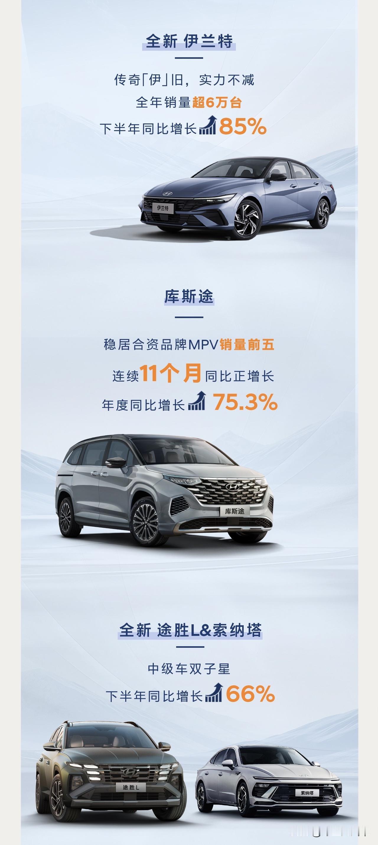 北京现代2025年销量210015台,同比增长14.8%,现代全球销量727万台! 日前,北京现代公布2025年销量数据,共计销售新车210015台,同比增长14.8%,下半年销量同比增长58%,国内销量连续6个月正增长。 现代汽车集团2025年全球累计销量超727万台,连续三年蝉联全球车企销量TOP 3。 具体车型来看,伊兰特全年销量超6万台,下半年同比增长85%;库斯途稳居合资品牌MPV销量前五,连续11个月同比正增长,年度同比增长75.3%;途胜L和索纳塔下半年同比增长66%。 面对新能源汽车的风生水起,北京现代也开始布局新能源汽车,去年10月底推出了一款全新车型现代EO羿欧,不过销量不尽如意,首月交出零售221辆的惨淡答卷,可以说合资品牌的转型阵痛,在EO羿欧身上体现得淋漓尽致!EO羿欧的 “哑火”,给所有合资车企敲响了警钟,新能源转型没有 “亡羊补牢” 的机会,唯有彻底放下身段、精准洞察需求,才能在存量市场中觅得一线生机!大家觉得呢?