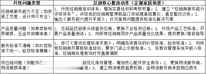 针对复盘发现的共性问题,总部牵头推动跨部门整改,从“产品、服务、供应链、经销商管理”四个维度,实现体系化优化,而非仅解决单个客诉。