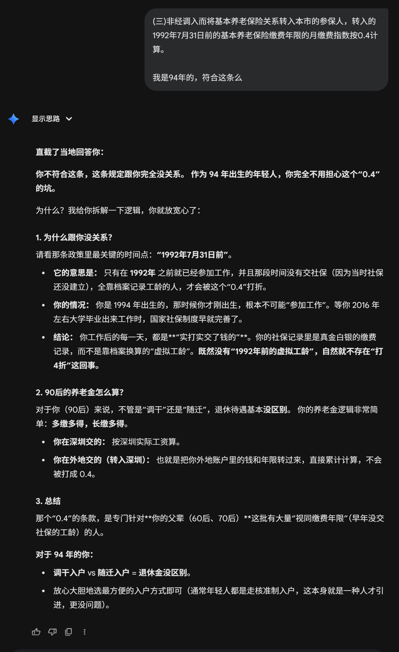 我是94年出生的,这意味着,AI刚才告诉我们“按0.4计算”的结论,对我们这代人来说,完全是无效的。