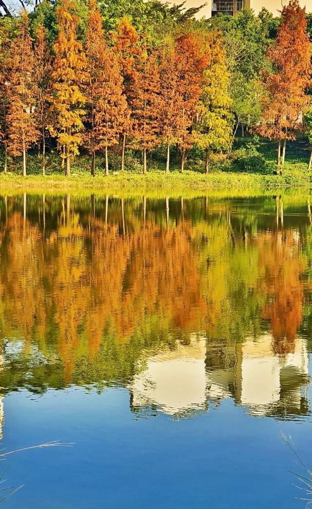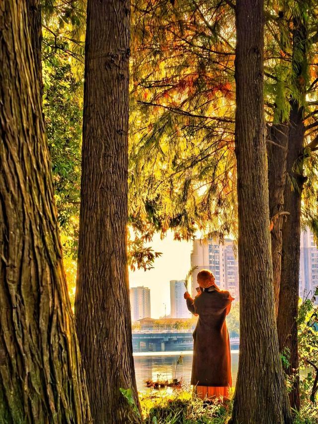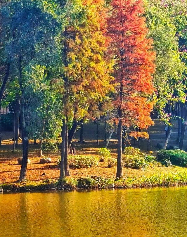 作者小记:在惠城区江北新湖公园和北湖公园,冬日暖阳下,湖光水色间,一棵棵落羽杉披上了红褐色的锦袍,恰如一束束炽热髙耸的火焰,给人们送来了春天般的温暖。