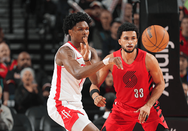 第二节比赛结束,火箭56-55领先开拓者。