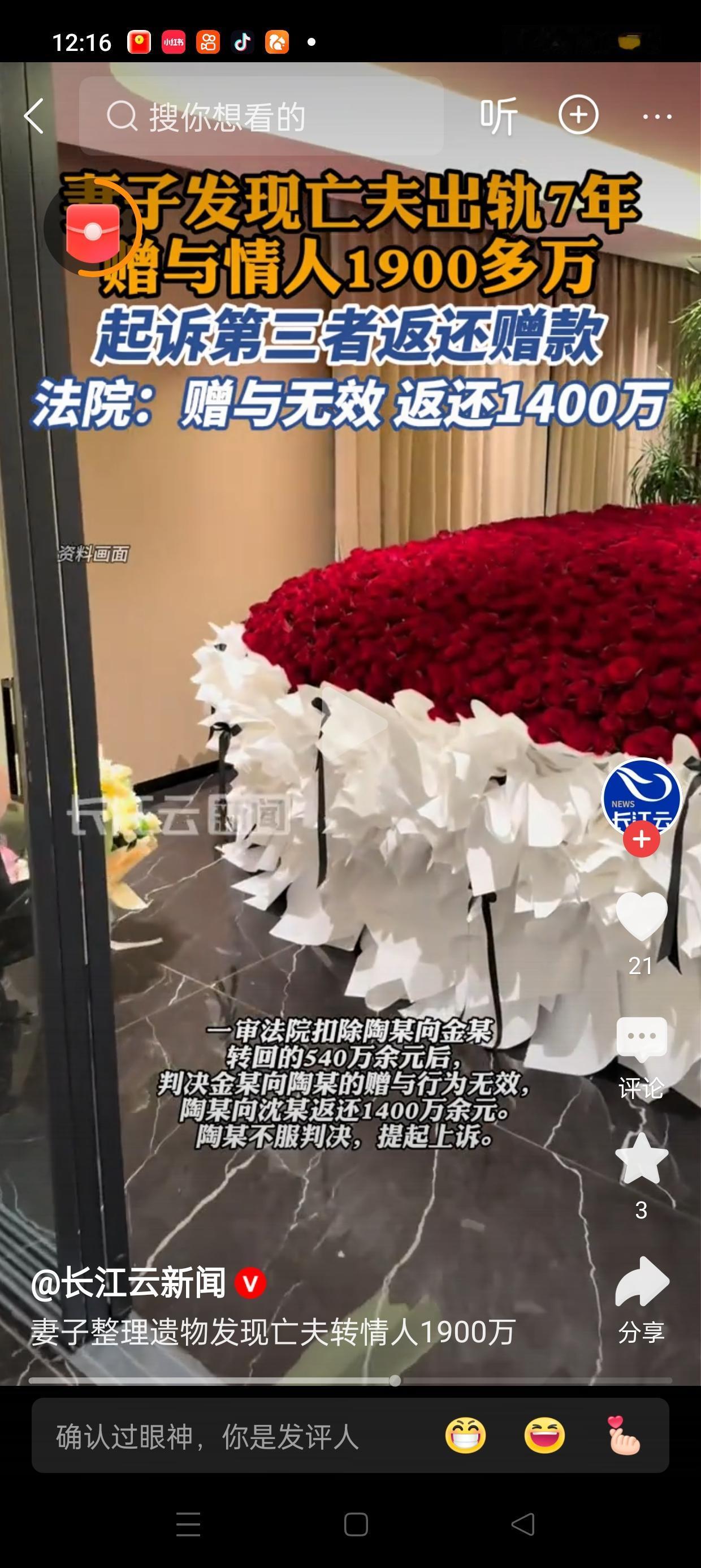 男子出轨7年,豪掷1900多万赠予情人,妻子直到丈夫去世才揭开真相——法院判决赠与无效,返还1400万!这起家庭与法律的激烈碰撞,背后隐藏着怎样的情感纠葛与法律玄机?让我们一探究竟。 出轨7年,豪掷千万赠情人,家庭破碎的背后隐藏着怎样的秘密? 上海一男子,他与妻子曾经恩爱有加。然而,命运的转折让他走上了出轨的道路。长达七年的婚外情,让他与情人之间的关系逐渐升温,甚至在财产方面也进行了大手笔的“投资”。据悉,他在这段关系中,赠与情人超过1900万元的巨额财产,这笔资金仿佛一场“金钱的盛宴”,让人难以置信。 然而,令人震惊的是,直到男子去世,妻子才得知丈夫曾经对情人的巨大“慷慨”。这不仅让家庭陷入了前所未有的危机,也引发了一场关于财产归属、婚姻伦理和法律责任的激烈争议。 面对这场家庭“财产战争”,妻子选择了法律途径。她以男子在婚姻存续期间,将巨额财产赠与第三者为由,起诉要求返还赠款。法院经过审理,作出了令人震惊的判决:认定这笔赠与行为无效,判决返还约1400万元。 为何法院会做出如此判决?这其中涉及到多个法律原则。首先,婚姻法明确规定,夫妻共同财产应当共同享有,任何一方在婚姻关系存续期间擅自进行大额财产转让,尤其是赠与第三者,都可能侵犯另一方的合法权益。其次,赠与行为如果违反法律规定或公共秩序,比如在配偶不知情、未征得配偶同意的情况下进行,法院可能认定其无效。 此外,法院还考虑到赠与的目的和情形。男子的行为似乎带有明显的“个人私利”色彩,且赠与金额巨大,超出了正常家庭财产分配的范畴,最终导致赠与行为被认定为无效。 这起案件不仅仅是一场法律诉讼,更是一场家庭伦理的考验。男子的出轨行为破坏了家庭的和谐,情感的背叛令人心碎。而他对情人的“豪赠”,更是对家庭责任的极大忽视。法院的判决,既是对法律的尊重,也是对家庭伦理的维护。 同时,这也提醒我们,财产的处理必须合法合规,尤其是在婚姻关系中,任何财产转让都应遵循法律程序,避免给家庭带来无法弥补的损失。 这起案件的背后,是婚姻、法律与道德的复杂交织。它提醒我们,无论在爱情还是财产问题上,诚信和合法是最基本的底线。只有尊重法律、珍惜家庭,才能避免类似悲剧的发生。 这场“金钱与情感的较量”最终以法律的公正作结,也希望每个人都能从中汲取教训,珍惜眼前人,守护家庭的幸福与和谐。