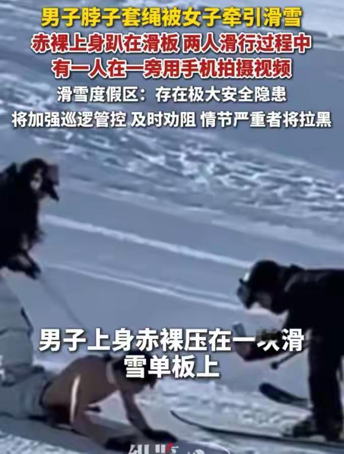 软骨头🦴?给男同胞丢脸? 破案了!真相在这里!流量剧本杀? 近日新疆将军山滑雪场事件引发热议!一女子用绳子牵着男子脖子,把男子当滑雪板,而男子则赤裸上身,进行滑雪! 男同胞看到估计都很气愤,真的是软骨头?其实真相是男子曾经是板滑雪一级运动员,女子是滑雪设备品牌方选手! 两个人这是拍视频引流,觉得好玩,并且男子还出面回应,不以为然。原来观众都被耍了,流量剧本杀啊!