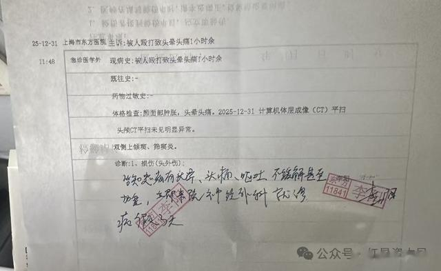 当事人向媒体提供了两份上海市东方医院的诊断单,诊断时间均为2025年12月31日,与网传聊天截图显示的时间一致。
