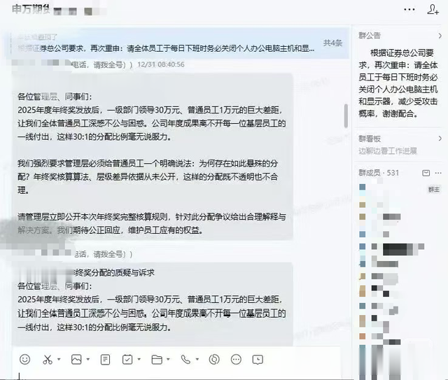 网传内容显示,2025年度年终奖发放后,公司内部出现“一级部门领导获30万元、普通员工仅1万元”的巨大差距,这一悬殊分配方案令全体员工深感不公与困惑。