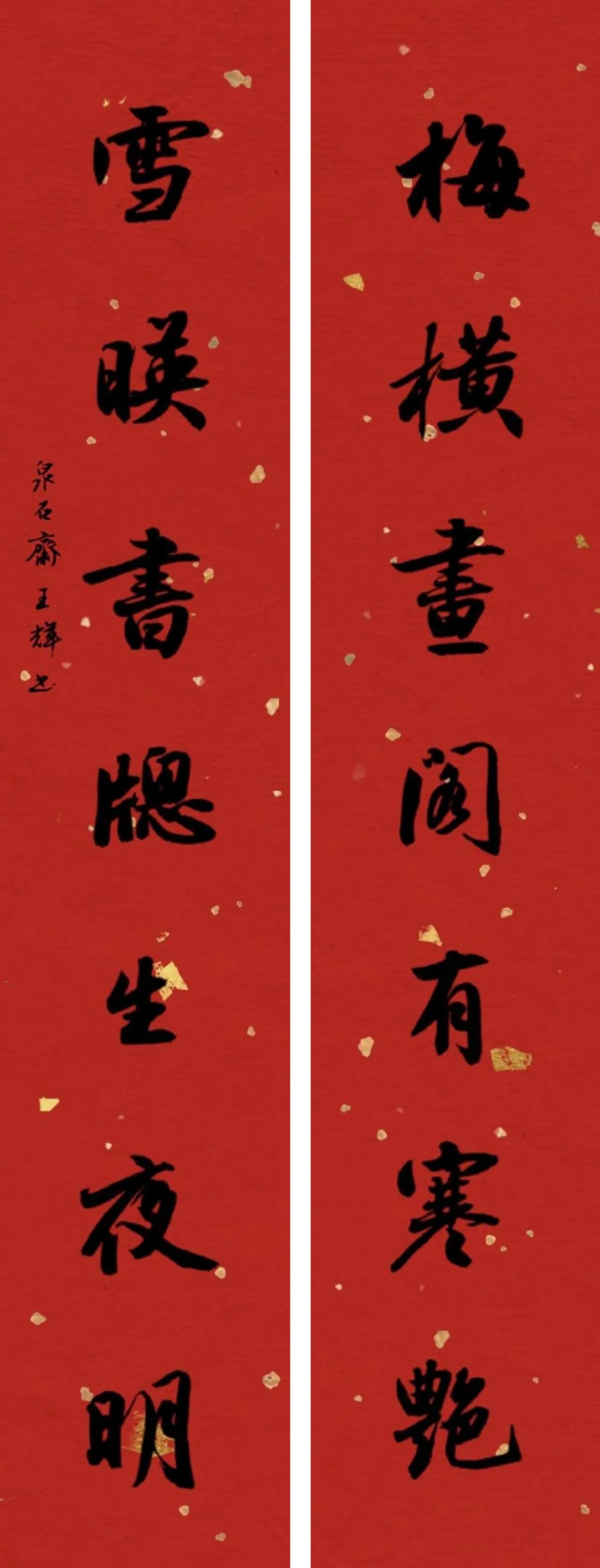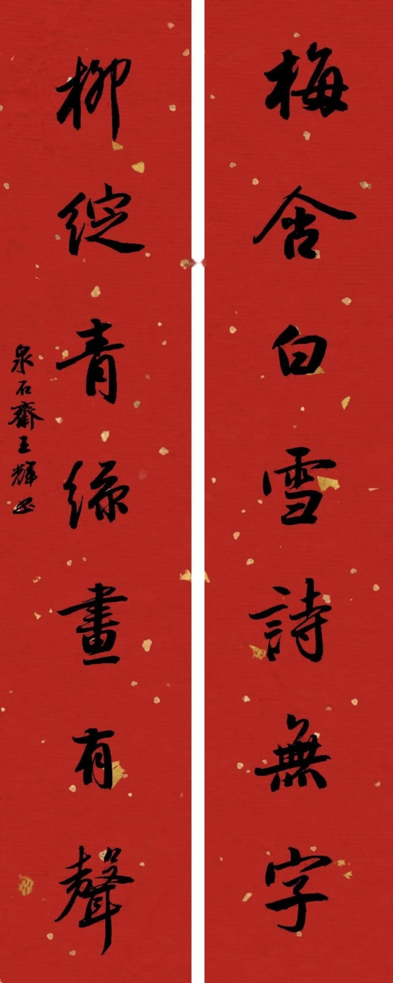 还是红纸上写书法喜气,尤其是在新年应景。好友@王辉书法这种行楷还是比较适宜写对联
